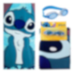 Set met badhanddoek en zwembril in Stitch-thema, ideaal voor strand, zwembad en alle zomerse zwemavonturen. Het kleurrijke ontwerp met Stitch maakt het set zowel speels als praktisch en past goed bij kinderen die van waterpret houden.