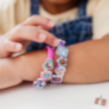Maak-je-eigen armbanden, een heerlijk knutselset waarmee kinderen hun eigen unieke armbanden kunnen maken met hun favoriete karakters. De set bevat 3 armbanden en 18 kleurrijke bedels die kinderen kunnen rijgen om persoonlijke sieraden te maken.