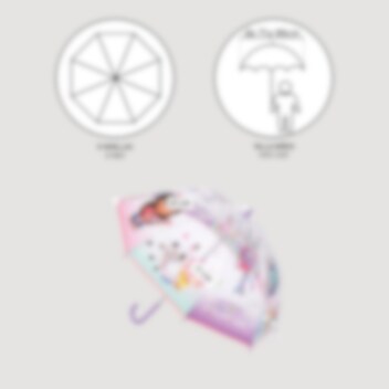 Hij heeft 8 baleinen en opent handmatig. Dankzij het stijlvolle ontwerp met Gabby’s Dollhouse-afbeeldingen wordt deze paraplu vast en zeker een favoriet van alle jonge fans van de serie.