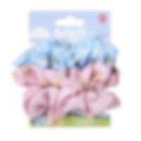 3 scrunchies in vrolijke kleuren met afbeeldingen uit Bluey. De set bevat twee scrunchies met print, een lichtblauwe met Bluey en een roze met Bingo en één effen lichtroze scrunchie in satijnlook. Gemaakt van 100% polyester voor een zachte en duurzame kwaliteit. Perfect om het haar op zijn plaats te houden en een speelse stijl toe te voegen. Dit is een officieel gelicentieerd product.