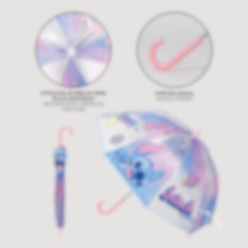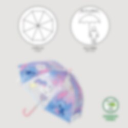 Maak regenachtige dagen magischer met deze kleurrijke kinderparaplu met Stitch uit Lilo & Stitch! De paraplu heeft een diameter van ca. 71 cm en is gemaakt van stevig PoE en glasvezel. Hij heeft 8 baleinen en wordt handmatig geopend. Met zijn speelse design met Stitch wordt deze paraplu al snel een favoriet bij alle jonge fans van de film.