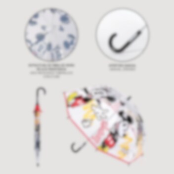 Maak regenachtige dagen leuker met deze charmante kinderparaplu met Mickey Mouse! De paraplu heeft een diameter van ca. 71 cm en is gemaakt van stevig PoE en glasvezel. Hij heeft 8 baleinen en wordt handmatig geopend. Het retro-geïnspireerde design met Mickey Mouse maakt deze paraplu tot een favoriet bij alle jonge fans van het klassieke Disney-personage.