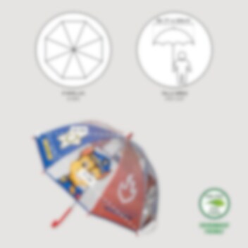 Maak regenachtige dagen leuker met deze kleurrijke kinderparaplu met Paw Patrol! De paraplu heeft een diameter van ca. 71 cm en is gemaakt van stevig PoE en glasvezel. Hij heeft 8 baleinen en wordt handmatig geopend. Met zijn speelse design met de karakters uit Paw Patrol wordt deze paraplu al snel een favoriet bij alle jonge fans van de serie.