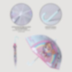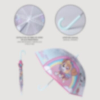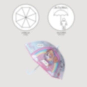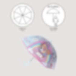 Maak regenachtige dagen extra leuk met deze schattige kinderparaplu met Skye uit Paw Patrol! De paraplu heeft een diameter van ca. 71 cm en is gemaakt van stevig PoE en glasvezel. Hij heeft 8 baleinen en wordt handmatig geopend. Het kleurrijke design met Skye en Marshall maakt deze paraplu tot een favoriet bij alle jonge fans van de serie.