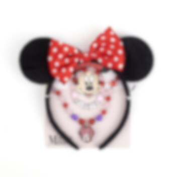 Creëer een speelse en klassieke look met deze mooie sieradenset van Minnie Mouse. De set bevat een zwarte diadeem met ronde oren en Minnie’s iconische rode strik met witte stippen, een kleurrijk kralenarmbandje met de letters “MINNIE” en een bijpassende ketting met een Minnie Mouse-bedel. Perfect voor jonge Disney-fans.