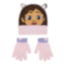 Maak de winter vrolijker met deze schattige set van Gabby’s Dollhouse! De muts toont Gabbys gezicht met schattige oren, en de roze handschoenen met paarse boorden maken de look compleet. Een charmante set voor kleine Gabby-fans.