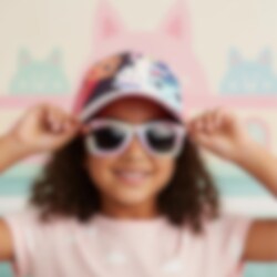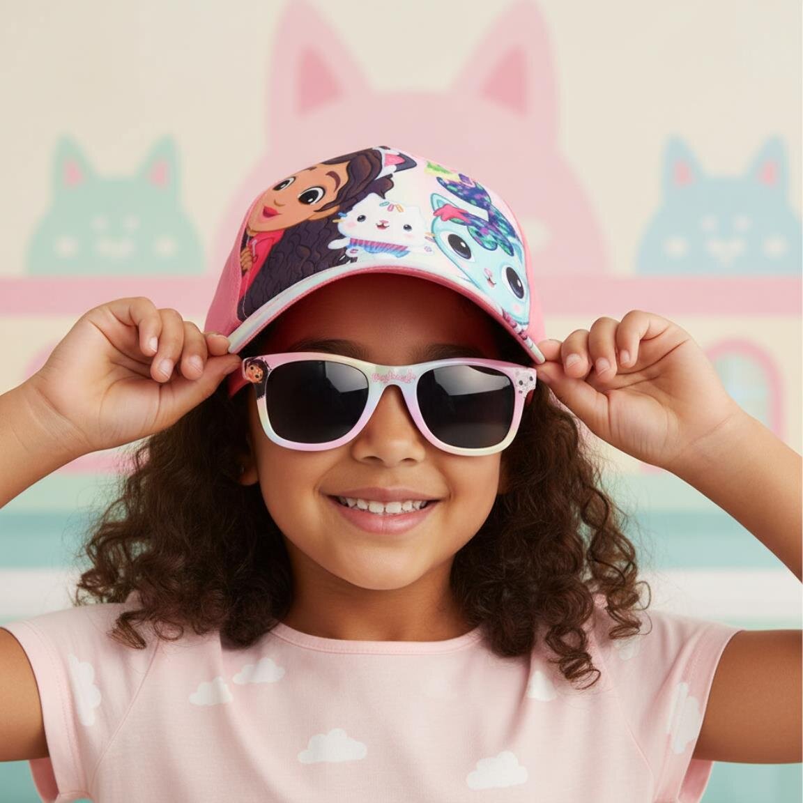 Een kleurrijke set met pet en zonnebril in Gabby's Dollhouse-thema, perfect voor zonnige dagen en buiten spelen. De afbeeldingen maken de set een favoriet bij kleine fans.