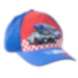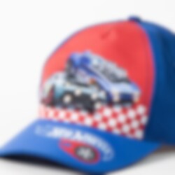 Een stoere kinderpet in Hot Wheels-thema met spannende afbeeldingen van snelle racewagens en een klassiek ruitpatroon dat het race- en actiegevoel versterkt. Perfect voor kinderen die van auto's en spannende avonturen houden.