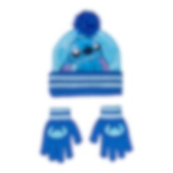 Deze schattige set met muts en handschoenen is perfect voor koude dagen. De muts heeft een lief Stitch-afbeelding en een blauwe pompon bovenop, terwijl de handschoenen versierd zijn met zijn herkenbare silhouet. Beide items hebben geribbelde boorden en zijn gemaakt van zacht, rekbaar materiaal dat kinderen warm en comfortabel houdt tijdens frisse dagen buiten. De set is geschikt voor kinderen van ca. 3-6 jaar.