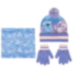 Deze leuke set met muts, nekwarmer en handschoenen is perfect voor koude dagen. De muts heeft een schattige afbeelding van Stitch en Angel en is afgewerkt met een paarse pompon bovenop. De nekwarmer is versierd met een speels Stitch-patroon en de bijpassende handschoenen met ribboorden zorgen voor een fijne pasvorm. De set is gemaakt van zacht en rekbaar materiaal dat kinderen warm en comfortabel houdt tijdens het spelen in de kou.