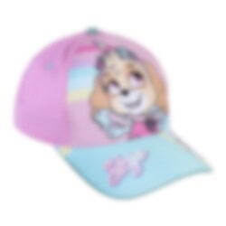 Prachtige kinderpet in de kleuren roze en turquoise met de schattige puppy Everest erop van Paw Patrol. De pet is gemaakt van 65% katoen en 35% polyester.