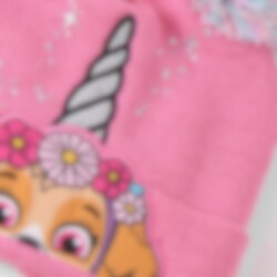 Deze schattige set met muts, sjaal en handschoenen is perfect voor koude dagen. De muts toont Skye en heeft een kleurrijke pompon bovenop, de handschoenen zijn versierd met sterren en de sjaal is bedrukt met een schattige afbeelding van Skye met vleugels. Zowel muts als handschoenen hebben geribde boorden en zijn gemaakt van zacht en rekbaar materiaal dat kinderen warm en comfortabel houdt tijdens het buitenspelen in de kou.