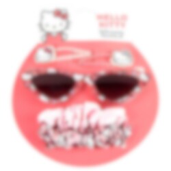 Zonnebril en haaraccessoires met Hello Kitty-thema voor een schattige en speelse stijl op zonnige dagen. De set bevat een stijlvolle zonnebril samen met bijpassende haarspeldjes en scrunchies, voor kinderen die van klassieke en charmante details houden.