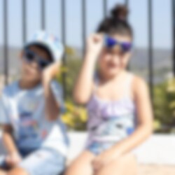 Premium zonnebrillen voor kinderen met stoere details en motieven van Lilo & Stitch. Op de bogen rond de getinte glazen bevindt zich Stitch aan beide zijden.