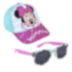 Een complete set met zowel een superleuke roze als turquoise kleurige pet met Minnie Mouse erop en een premium zonnebril, beide in kindermaten. De kleurrijke glazen hebben motieven van Minnie Mouse.