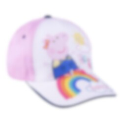 De pet heeft een omtrek van 51 cm en is verstelbaar aan de achterkant, waardoor hij meestal geschikt is voor kinderen van ongeveer 2 tot 4 jaar.