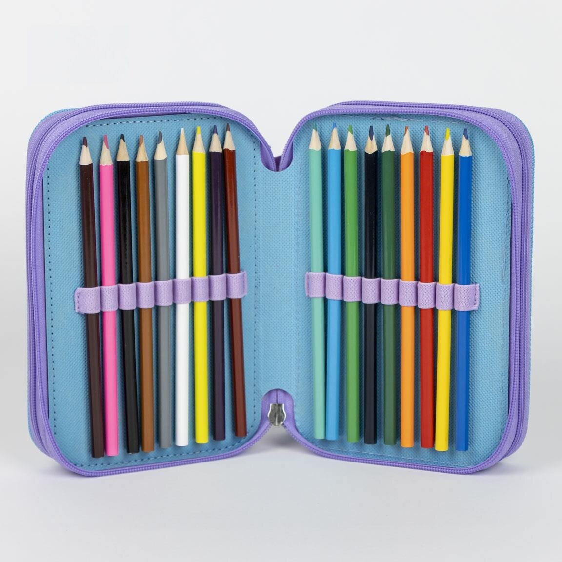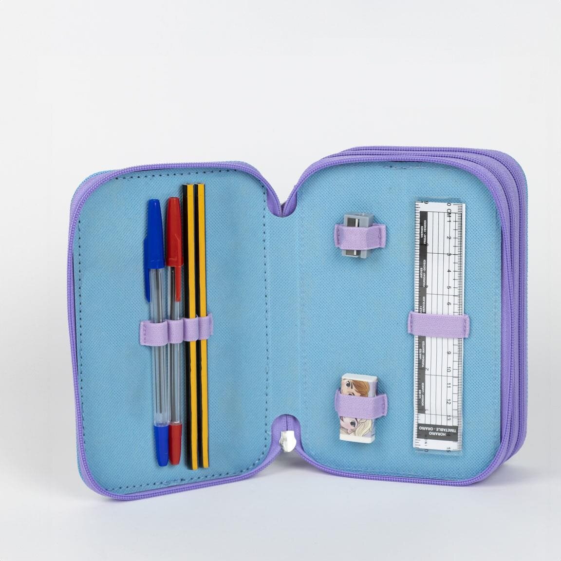 Etui met accessoires in een mooi Frozen-thema met Elsa en Anna, ideaal voor op school of knutselen thuis. Het praktische etui heeft meerdere vakjes en houdt alle pennen en accessoires georganiseerd, terwijl de kleurrijke afbeelding het extra leuk maakt om het elke dag te gebruiken.