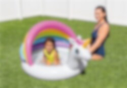 Het Intex Kinderbad Eenhoorn brengt magisch waterplezier naar je tuin. Met het schattige eenhoornontwerp is dit bad perfect voor kleine kinderen en eenvoudig op te blazen. Geschikt voor kinderen vanaf 2 jaar onder toezicht van een volwassene.