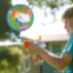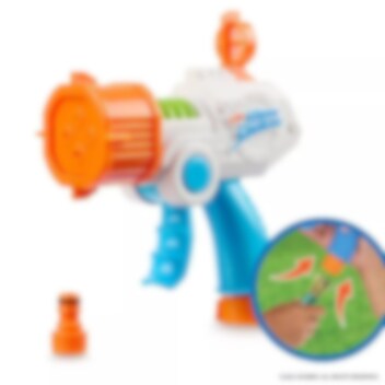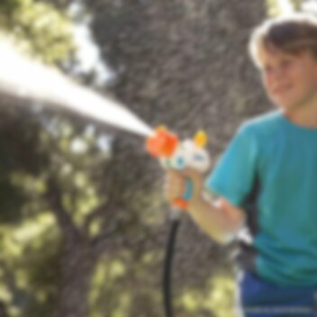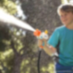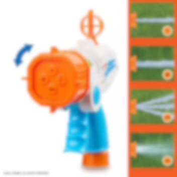 Richt en maak je tegenstanders doorweekt met dit waterpistool. Het schot wordt aangedreven door het water uit uw tuinslang en heeft een bereik van maximaal 4-5 meter. Je kunt kiezen uit 4 verschillende mondstukken.