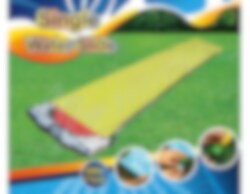 De waterglijbaan heeft waterstralen langs de hele baan, die eenvoudig op een tuinslang kunnen worden aangesloten. Gemaakt van kunststof, is de waterglijbaan ongeveer 71 cm breed en 480 cm lang.