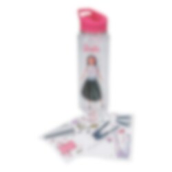 Barbie waterfles die zowel praktisch als leuk is! De fles is 21 cm hoog en heeft een inhoud van 650 ml. Om het persoonlijk te maken, worden er twee vellen met stickers meegeleverd. Perfect voor de kleine Barbie-fan om mee te nemen op uitstapjes of naar school.
