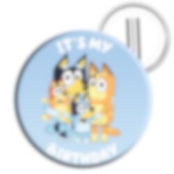 Een badge met een afbeelding van Bluey en de tekst ''It's My Birthday". Perfect voor de jarige om te dragen en zijn speciale dag te vieren. De badge heeft een diameter van 6 cm.