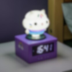 Begin de dag op de beste manier met deze charmante Gabby's Dollhouse wekker! De digitale wekker is ca. 16 cm hoog en heeft bovenop een verlichte Cakey Cat. De wekker heeft een muzikaal alarm dat je elke ochtend wekt. Druk gewoon op het hoofd van Cakey Cat om de snoozefunctie te activeren. Wanneer je op het hoofd drukt, gaat ook het nachtlampje aan, perfect om een zachte gloed in de kinderkamer te creëren. Een leuke én praktische toevoeging voor alle fans van Gabby's Dollhouse.