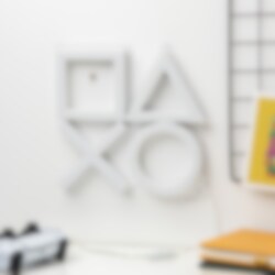 Stijlvolle wandlamp met de iconische PlayStation-symbolen – driehoek, cirkel, kruis en vierkant – die oplichten in heldere neonkleuren. De lamp is eenvoudig aan de muur te bevestigen en is een coole eyecatcher in de gamehoek, tienerkamer of speelruimte.
