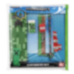 Voor de creatieve Minecraft-speler biedt deze 7-delige schrijfset alles wat nodig is om te organiseren en te inspireren. De set bevat een opbergzak, een metalen pennendoos, een A5-formaat notitieboek, een potlood, een liniaal, een gum en een potloodslijper.