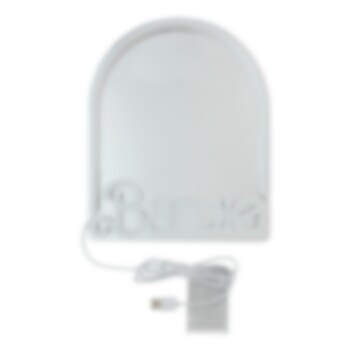 Geef de kamer een vleugje Barbie glamour met deze stijlvolle wandlamp. De lamp is 27 cm hoog en combineert een spiegel met decoratieve LED verlichting in wit en roze. Een perfecte combinatie van een praktisch spiegeltje en een elegante woonaccessoire, ideaal voor de make-up hoek of het bureau.