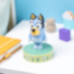 Breng gezelligheid in de kinderkamer met Bluey. Deze schattige lamp toont Bluey en verspreidt een zacht en vertrouwd licht. De kleurrijke voet heeft een mooi patroon en maakt de lamp perfect als nachtlampje voor de jongste kinderen. Dankzij het compacte formaat is hij eenvoudig te plaatsen op het nachtkastje, in de boekenkast of als decoratie in de speelhoek.