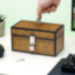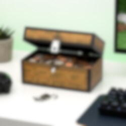Supercoole spaarpot die eruitziet als een klassieke kist uit de wereld van Minecraft. Perfect om muntjes en kleine schatten in te bewaren – en extra veilig dankzij het meegeleverde hangslot met sleutels.