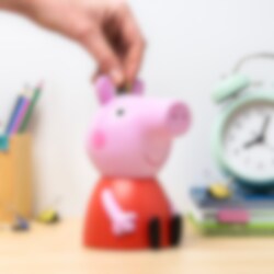 Leuke spaarpot in de vorm van de populaire Peppa Pig – een vrolijke manier om kinderen te laten sparen! Elke keer als je een muntje erin stopt, hoor je één van de vijf officiële Peppa Pig-geluiden. Sparen is nog nooit zo leuk geweest!