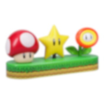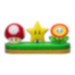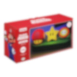 Deze decoratieve lamp is 30 cm breed en bevat drie klassieke power-ups uit Super Mario™ – Super Mushroom, Super Star en Fire Flower – die stijlvol op de basis zijn geplaatst. Zet de lamp aan en kijk hoe deze legendarische iconen oplichten! De lamp heeft ook een faseverlichtingsmodus waarbij elk symbool één voor één oplicht, evenals een muziekreactieve modus die het licht synchroniseert met geluiden in de omgeving.