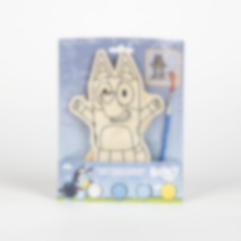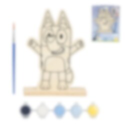 Maak een kunstwerk van je favoriete puppy met deze schattige houten Bluey-figuur om zelf te verven. De set bevat zowel verf als kwast, dus je kunt meteen aan de slag. Een leuke en creatieve activiteit voor jonge fans van Bluey die hun eigen kleurrijke versie van het speelse hondje willen maken.