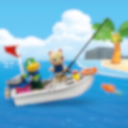 Inspireer meisjes en jongens vanaf 6 jaar met de aanpasbare set LEGO® Animal Crossing Kapp'ns eilandrondvaart (77048). Kinderen bouwen een onbewoond eiland dat ze zullen herkennen uit hun favoriete videogame en kunnen daarna uren plezier beleven aan het herbouwen voor nog meer speelplezier. Kinderen gaan samen met Kapp'n de schildpad op zijn boot naar het op Animal Crossing gebaseerde onbewoonde eiland en ontmoeten daar Marshal de eekhoorn. Net als in de game verzamelen ze bamboe, graven ze naar klingels en gebruiken ze de hengel om vis te vangen en te verkopen. Na een leuk rollenspel kunnen kinderen creatief aan de slag met het opnieuw indelen van de bouwplaten. Elk element is verplaatsbaar voor onbeperkt speelplezier! Laat kinderen genieten van het bouwen van verhalen uit de Animal Crossing videogame. Dit bouwspeelgoed is een leuke cadeautip voor een verjaardag en kan worden gecombineerd met andere LEGO Animal Crossing sets voor onbeperkte speelmogelijkheden.