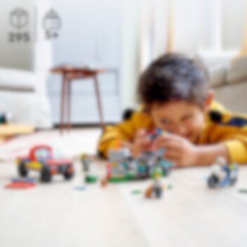 Kinderen die van actie houden, zullen de LEGO® City Brandweer & Politie achtervolging (60319) speelset geweldig vinden. De set zit vol details en coole voertuigen: een brandweerpick-up met een drone, een politiemotor en een vluchtauto voor de boef. Met een kattenfiguur en 3 minifiguren, waaronder brandweerman Bob uit de tv-serie LEGO City Adventures. Bouwspeelgoed voor kinderen vanaf 5 jaar Deze set bevat een stapsgewijze bouwhandleiding met afbeeldingen en interactieve digitale bouwinstructies. Deze intuïtieve gids is te vinden in de gratis LEGO Bouwinstructies app voor smartphones en tablets en bevat geweldige zoom- en draaifuncties, waarmee kinderen hun modellen tijdens het bouwen vanuit alle hoeken kunnen bekijken. De creatieve wereld van LEGO City Met LEGO City speelsets krijgen kinderen een leuke bouw- en speelervaring met gedetailleerde gebouwen, realistische voertuigen en personages die fantasierijke rollenspellen op basis van situaties en helden uit het echte leven stimuleren.