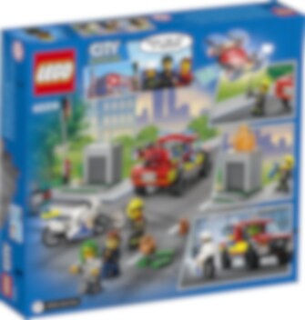 Kijk uit voor die kat! PIEEEP... BOEM! Een te hard rijdende boef met een flinke buit is met haar vluchtauto tegen een verkeerslicht gereden en nu is er brand in de stad. Zet de politiemotor in om de vluchtende boef te vangen! Stap daarna samen met brandweerman Bob uit de LEGO® City tv-serie aan boord van de brandweerpick-up, rijd naar de brand en stuur een coole brandweerdrone de lucht in om de vlammen te doven. Er staat je een hoop actie te wachten in LEGO City!