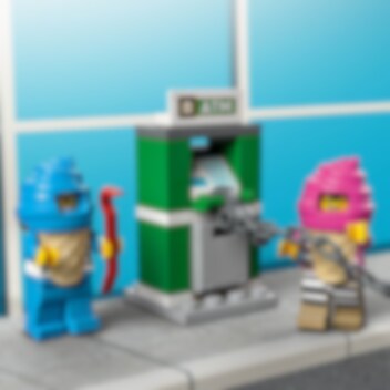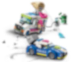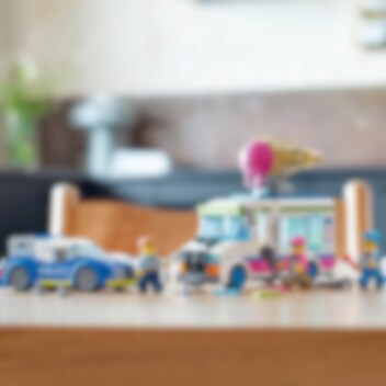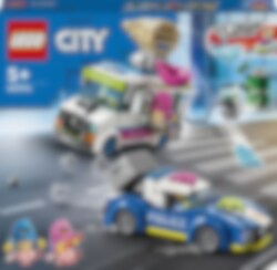 Klabam! De koelbloedige criminelen IJsboef en Slagroomboef hebben een geldautomaat uit de muur gerukt en gaan ervandoor in hun aangepaste ijswagen! Roep de hulp in van de LEGO® City politieagent in het geweldige onderscheppingsvoertuig. Ontwijk de kledders uit de ijsschieter op de truck en gebruik de bandenprikkers om de boeven een halt toe te roepen. Er staat je een hoop 'coole' actie te wachten in LEGO City!