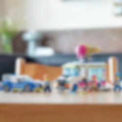 Kinderen kunnen scènes uit de tv-serie LEGO® City Adventures naspelen met deze LEGO City IJswagen politieachtervolging (60314) speelset: de ijswagen van de boeven met een kledderschieter, plus een cool onderscheppingsvoertuig van de politie met bandenprikkers. En met de minifiguren van 2 beruchte ijsboeven en een politieagent zijn alle ingrediënten aanwezig voor speelsessies boordevol actie. Ontworpen voor kinderen vanaf 5 jaar Deze LEGO bouwset bevat een stapsgewijze gedrukte bouwhandleiding en interactieve digitale bouwinstructies. De digitale gids is te vinden in de gratis LEGO Bouwinstructies app voor smartphones en tablets en bevat intuïtieve zoom- en draaifuncties, waarmee kinderen elk model tijdens het bouwen vanuit alle hoeken kunnen bekijken. De creatieve wereld van LEGO City Met LEGO City speelsets krijgen kinderen een leuke bouw- en speelervaring met gedetailleerde gebouwen, realistische voertuigen en personages die fantasierijke rollenspellen stimuleren.