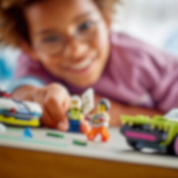 Er is iemand ontsnapt uit de gevangenis! Stap in het stoere onderscheppingsvoertuig van de politie en ga op jacht naar een van de meest beruchte boeven van LEGO® City. De wagen is uitgerust met een grote achterspoiler, coole velgen en stoere laagprofielbanden voor extra snelheid en grip. Scheur door de bochten en voer gave drifts uit om de boef voor te blijven in haar supersnelle auto! Er wacht je geweldige actie in LEGO City!
