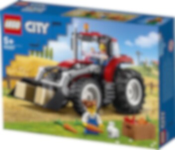 Kör ut på landsbygden i denna ikoniska LEGO® City traktor. Att köra över tuff terräng är inga problem med traktorns stora bakdäck. Lasta höbalarna och lådan med pumpa, äpple och morötter i traktorskopan. Höj sedan bommen för att lyfta upp dem i luften och kör dem till bonden och hans dotter - det finns en hungrig kanin att mata!