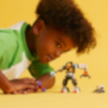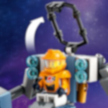 Klim in de cockpit van de robuuste ruimtebouwmecha voor een geweldige planetaire mijnexpeditie. Dit coole pak is ideaal om nieuwe werelden te verkennen, met grote flexibele gewrichten, een krachtige grijparm en enorme voeten om op planeten te lopen. Laat je bouwrobot naar proefmonsters boren en gebruik je armen met een hamer en klauw om rotsen te breken en energieproducerende kristallen op te graven. Ben je er klaar voor? Kom mee!
