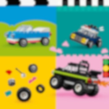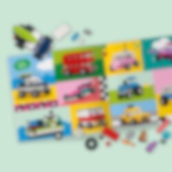 Maak je riemen vast en beleef volop plezier met de coolste verzameling aanpasbare LEGO® voertuigen! Maak een politieauto, een ijscowagen, een quad, een voorlader, een vrachtwagen, een limousine, een terreinwagen en een stationwagon. Gebruik kleurrijke stenen, speciale onderdelen en meer dan 50 wielen om je auto aan te passen. Ontdek 10 ideeën om je auto's nog geweldiger te maken!