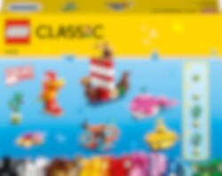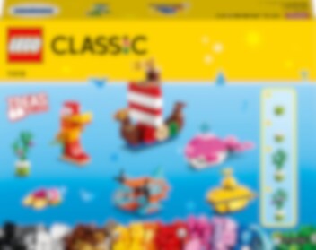 Laat jonge kinderen kennismaken met de eindeloze wereld van fantasierijk speelplezier met deze LEGO® Classic Creatief zeeplezier (11018) speelset met een kleurrijke selectie LEGO stenen en 6 inspirerende minimodellen met een zeethema, plus 2 zakjes met extra stenen om zelf creatief mee aan de slag te gaan. Inspirerende bouwideeën voor kinderen vanaf 4 jaar Bevat stapsgewijze instructies met afbeeldingen waarmee kinderen een Vikingschip, gele onderzeeër, onderwaterdrone, zeepaardje, walvis en een schildpad kunnen bouwen. Zelfs beginnende bouwers kunnen de trots en het plezier ervaren van het bouwen van hun eigen LEGO speelgoed. Spelenderwijs leren met LEGO Classis bouwspeelgoed LEGO Classic bouwsets zitten boordevol ideeën en inspiratie die onbeperkt spel stimuleren, waarbij kinderen belangrijke vaardigheden ontwikkelen die een leven lang meegaan.