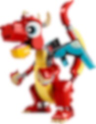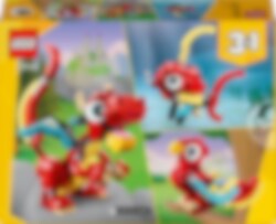 Maak je op voor een reis naar een magisch en mysterieus land, waar je kunt genieten van avonturen met 3 kleurrijke dieren. Bouw de geweldige LEGO® Creator Rode draak met vleugels en hoorns en geef hem een mooi plekje. Voor nog meer plezier kun je het model ombouwen tot een schattige feniks met kleurrijke veren of een leuke vis die op de bodem van de zee zwemt. De keuze is aan jou met deze fantastische 3-in-1 set!