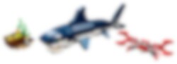 Duik in een oceaan vol avonturen met de LEGO® Creator 3in1 set Diepzeewezens. Help de schattige diepzeekrab de schatkist te beschermen tegen de enorme, huiveringwekkende haai met zijn bijtgrage kaken, vlijmscherpe tanden, weerspiegelende ogen en krachtige zwiepende staart! Bouw de haai vervolgens om tot een flexibele inktvis of een zeeduivel met een enorme bek voor nog meer onderwaterplezier.