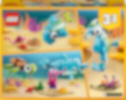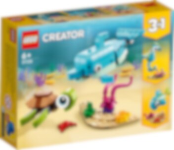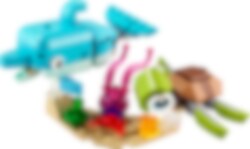 Met deze 3in1 Dolfijn en schildpad (31128) bouwset kunnen LEGO® fans van 6 jaar en ouder naar de bodem van de zee duiken en genieten van eindeloze avonturen. De set bevat een babydolfijn met beweegbaar lichaam, flippers, bek en staart en een babyzeeschildpad met beweegbare flippers en kop, op een standaard. Wilde speelgoeddieren stimuleren fantasierijk spel Het onderwaterplezier houdt nooit op met de 3 zeedieren die kinderen met deze LEGO Creator 3in1 set kunnen bouwen. Ze kunnen een beweegbare dolfijn en schildpad bouwen en deze later ombouwen tot een beweegbaar zeepaardje met een zeeslak, een mooie vis met een krab of zelf een compleet nieuw dier verzinnen. LEGO bouwsets voor creatief plezier LEGO Creator 3in1 sets bevatten alles wat kinderen nodig hebben voor urenlang speelplezier met in elke set 3 verschillende modellen om te bouwen! Het plezier houdt nooit op, want elk gedetailleerd en realistisch model kan uit elkaar gehaald worden en vervolgens worden omgebouwd in alles wat ze maar kunnen bedenken! Je kunt kiezen uit een uitgebreide serie 3in1 sets van bijvoorbeeld tijgers, voertuigen of vliegtuigen.