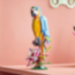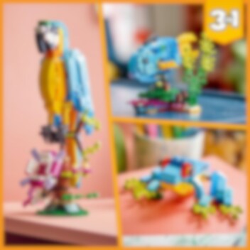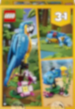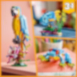 Kleine bouwers en gepassioneerde dierenliefhebbers van 7 jaar en ouder kunnen diep het regenwoud in trekken voor verhalen boordevol actie met deze LEGO® Creator 3in1 Exotische papegaai (31136) bouwset. De set bevat een kleurrijke papegaai die zijn lichaam volledig kan draaien, terwijl hij op een boomtak zit en zijn vleugels en staart beweegt. 3-in-1 speelgoed voor creatief speelplezier Met deze geweldige LEGO 3-in-1 set kunnen kinderen 3 verschillende exotische dierenmodellen bouwen. Zo kunnen ze een kleurrijke papegaai bouwen die op een boomtak zit en deze vervolgens ombouwen tot een speelse vis die diep in de zee zwemt of een grappige kikker die zijn poten kan bewegen. Een leuke digitale ervaring voor LEGO fans Download de LEGO Builder app en betreed een nieuwe wereld vol bouwplezier. Hiermee kunnen kinderen inzoomen en hun modellen draaien in 3D, sets opslaan en hun voortgang bijhouden.