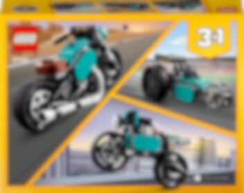 Bereid je voor op meeslepende actie met 3 verschillende supercoole voertuigen. Spring achter het stuur van de klassieke motor voor een ritje over het platteland. Wanneer je afstapt, kun je hem ombouwen tot een straatmotor en de stad om je heen ontdekken. Of race laag bij de grond over de baan in een top fuel dragster met een krachtige motor en wielen! Spanning ten top met deze fantastische 3-in-1 bouwset.